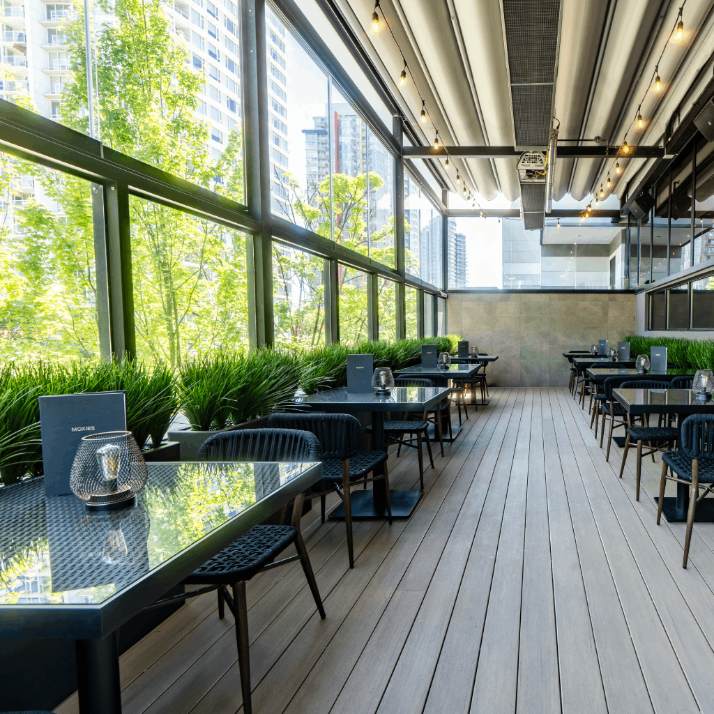 Soak up the city on one of downtown Vancouver’s best-kept secrets: the rooftop patio at Moxies West Georgia. Located just across from Rogers Arena, our patio offers stunning views of West Georgia Street, the arena, and the downtown skyline, making it the perfect place to relax in the sun or dine under the stars. Whether you’re here for lunch, dinner or happy hour, you’ll enjoy one of the best patio views in Vancouver.