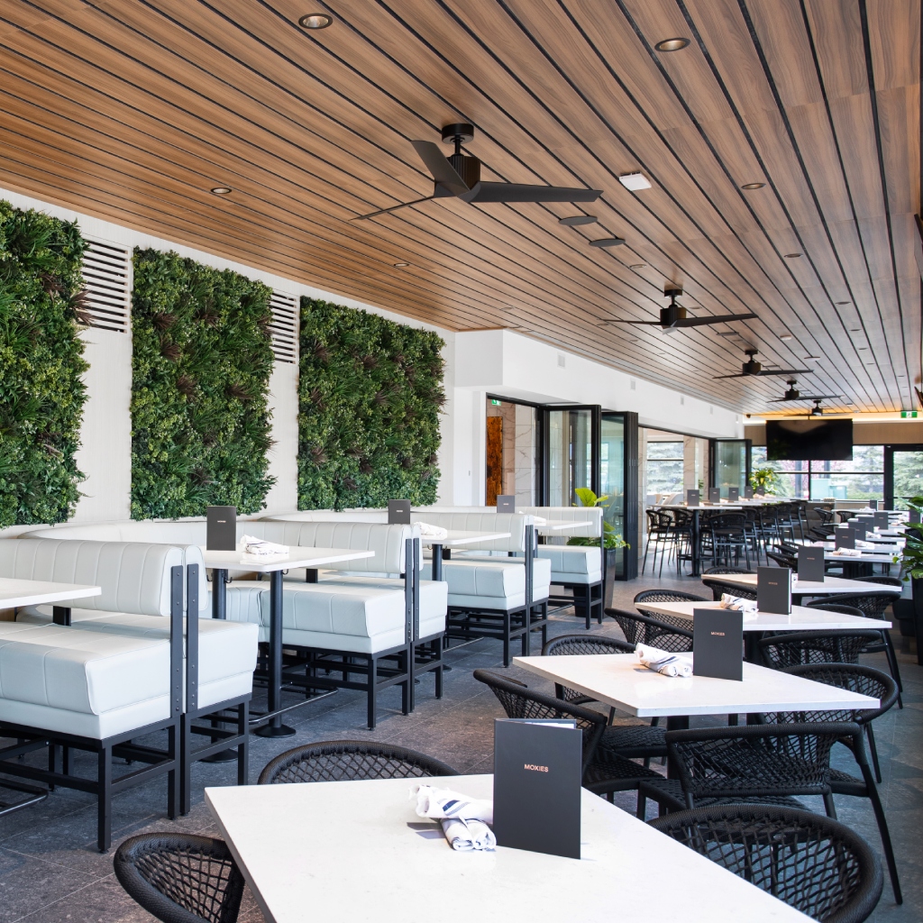 Featuring a large four-season patio perfect for private events and extensive lounge, Moxies is perfect place to relax and dine with ease and convenience.