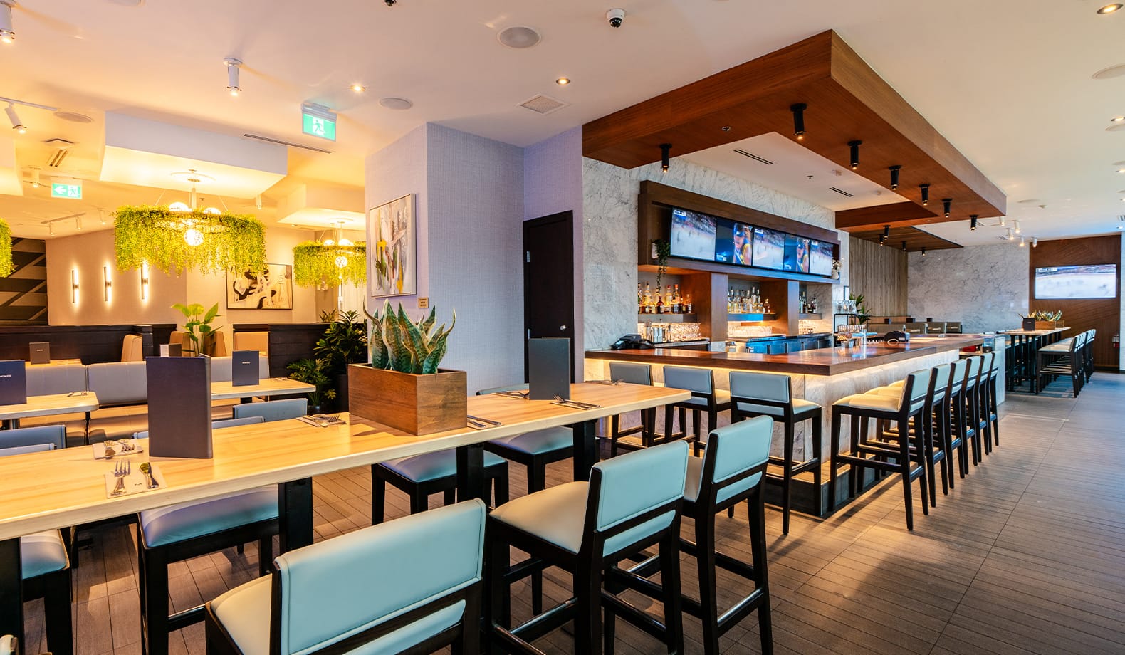 Newly renovated, Moxies Langley is a community staple that features a bright modern interior with natural woods and greenery throughout.